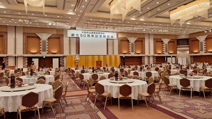 本日17:30から、美原高校50周年記念祝賀会を 帝国ホテル大阪 孔雀の間 にて開催しました。 会場にはたくさんの同窓生・旧教職員が集い、久しぶりの再会にあちらこちらで笑顔の花が咲きました。 祝賀会は、同窓会会長挨拶に始まり、同窓生による太鼓演舞(ビデオ上映)、豪華賞品抽選会、美原高校思い出ビデオなど、たくさんの演目があり、瞬く間に2時間半が過ぎてしまいました。 美原高校は3月末に閉校となりますが...