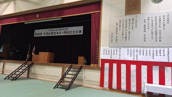 会場準備も整い、いよいよ明日は卒業式です。 先月9日の卒業判定会議では、在籍する生徒全員の卒業が決まりました。 本日、明日ともに気温が低くなるようです。 くれぐれも体調管理には注意して、明日の卒業式にも元気に登校してほしいと思います。 皆さんの「晴れ姿」を楽しみにしています。 また、明日は卒業式の後に閉校式もあり、48期生は美原高校最後の卒業生となります。 卒業式・閉校式を通して、有終の美を飾って...