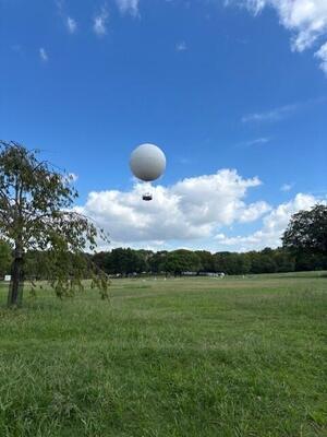 これ考えた人天才!そう思いませんか?古墳って教科書で見ると形や大きさが良くわかりますが、人間の目の高さから見ると、森?くらいにしか見えません。100mの上空から見たら、感動するだろうなぁと思います。何年か後には、堺市民なら一度は気球に乗って古墳を見たことがある...という時代が来るんじゃないかと思いました。気球は大仙公園から浮かぶらしいのですが、毎日そのあたりを通って通勤している本校職員から、素晴らしい写真をもらいました。カレンダーにでも使えそうな素敵な写真です。古墳を作ってくれた人と気球を上げてくれる人に感謝です!