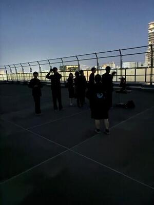 これまで何度もご紹介してきた天文部の観望会ですが、今回は校内から参加者を募っての開催となりました。屋上で快晴の夜空を見上げる非日常の体験は、天文に興味のある生徒ばかりではなく、日頃のストレスを軽減する効果があるのかもしれません。望遠鏡を覗きながら天文部の解説を聴いていたら、自分自身が、広い宇宙の小さな地球に住む一人の人間であることを思い出させてくれます。