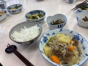 家庭科調理実習にお邪魔してきました。中学校でも調理実習をすると思いますが、みんなで作る料理の味は格別ですよね。三国丘高校には、家庭科の先生(教諭)と家庭科専属の実習教員の先生がいます。今回、指導を受けながら作ったのは、肉じゃがと小鉢が二つです。炊き立てのご飯と一緒に食べたら、もぅ言葉では言い表せないくらい最高の美味しさです。写真の笑顔を見てもらえれば納得だと思います。