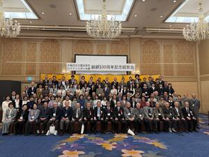 11月16日(日)、バスケットボール部創部100周年記念式典が開催されました。ホテルアゴーラの立派なホールに集まったみなさんの胸には、青春が蘇っていたのではないでしょうか。バスケット三丘会(バスケットボール部同窓会)の会長のご挨拶に続いて来賓の紹介等が続く第1部を終えた後、第2部の企画として、バスケットボール部100年の歴史を綴った映像が上映されました。時代を追って懐かしい映像が流れ、会場からは場面場面で感嘆の声が漏れていました。