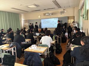 こんな場面を中学生に見てもらえたらなぁ...と、心の底から思いました。CS1(1年生の探究授業)の発表会です。発表会と言っても、まだまだ1年生ですので、大きな舞台で行うわけではありません。自分たちがつくったスライドを見せながら教室で行うプレゼンテーションですが、私が見た班は、堂々としていました。さすが、三丘生!プレゼンテーションスキルは、どの学校にも負けないと思っています。