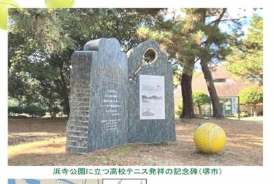 三国丘高校の硬式テニス部は輝かしい実績を誇るクラブですが、それだけではなく、卒業生が、郷土の歴史や文化に貢献していることを誇りに思います。みなさんも、浜寺公園に行く機会があれば、テニスコートの横にある記念碑を訪ねてみてください。