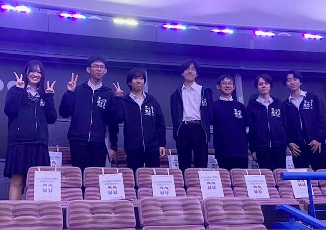 上映が終わるとアナウンスが入り、解説に挑戦した7人の部員の紹介がありました。これもソフィア堺のスタッフのみなさんの配慮だと思います。観覧席に向いて一列に並び、拍手に笑顔でこたえる部員たちは、誇らしげに胸を張っていました。