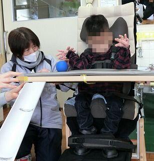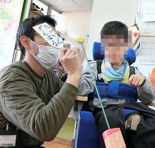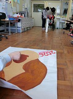 顔のパーツを選び、ボッチャのボールを転がして位置を決めました。