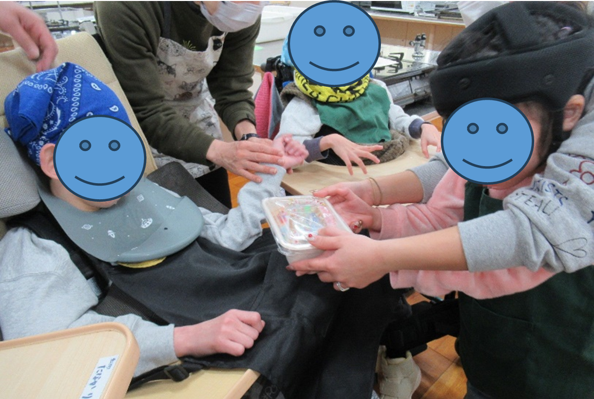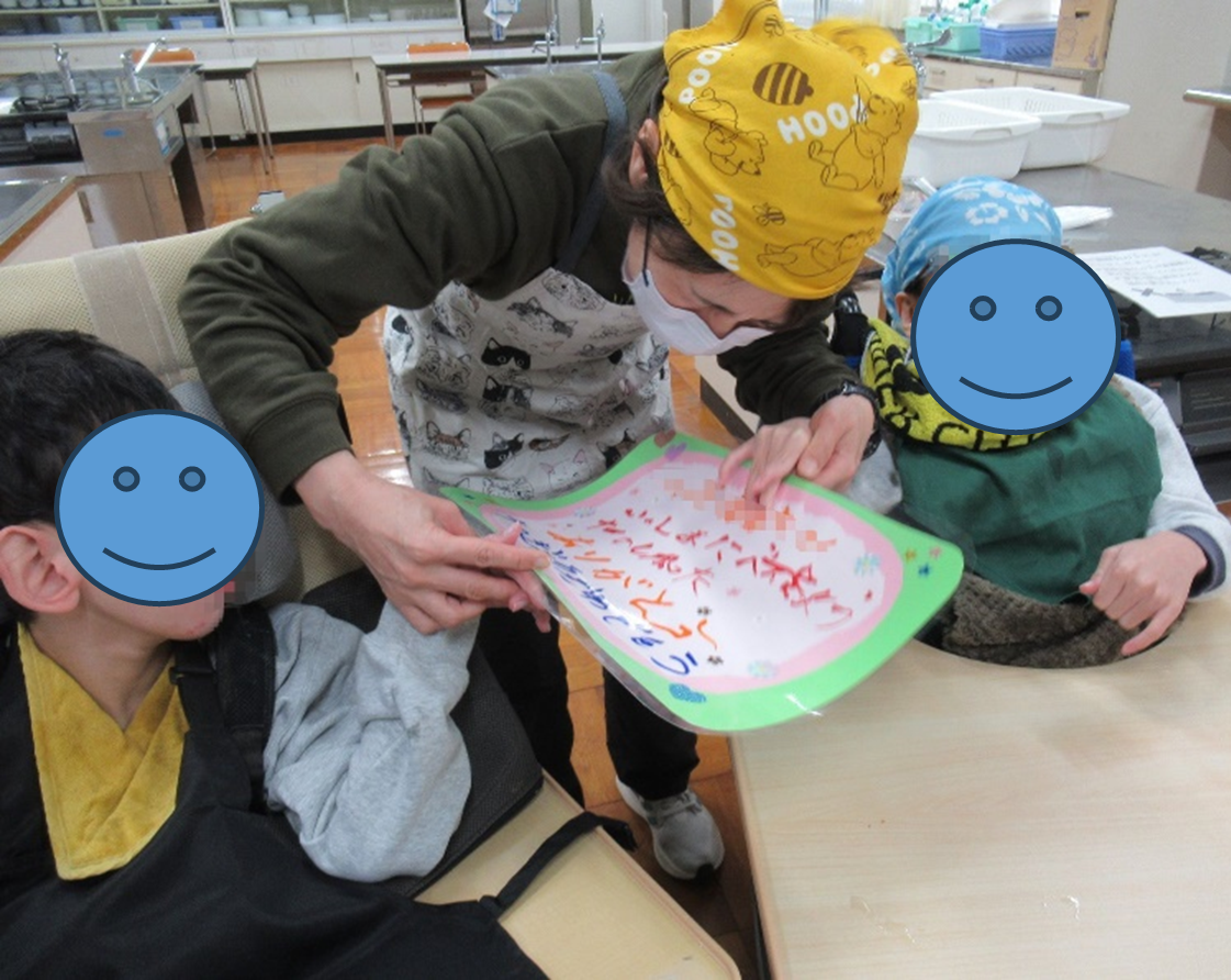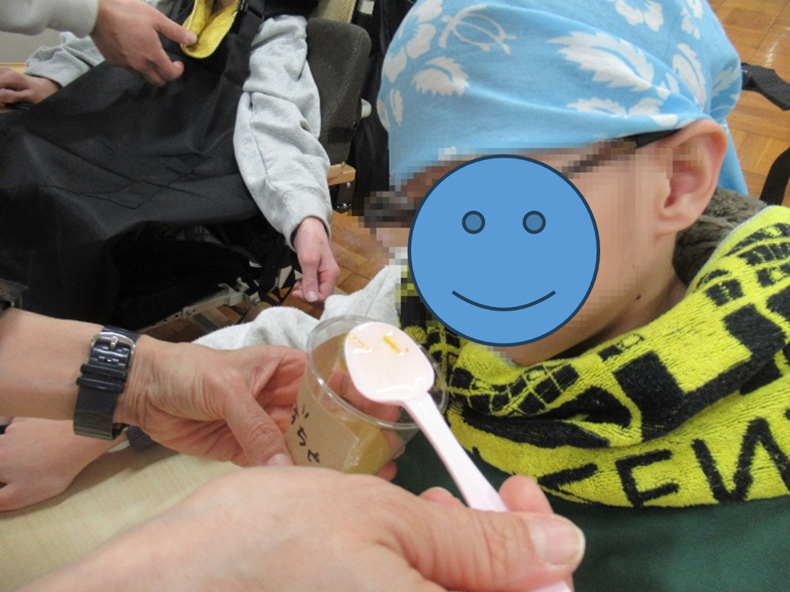 ・飲み物は抹茶、チャイ、ゆず茶、コーンスープの4種類。それぞれの飲み物を目の前でお湯を注いで作り、色を見たり匂いをかいだり説明を聞いたりして、表情や声や仕草などで一人ずつお気に入りの飲み物を選びました。「卒業おめでとうー!!」と乾杯後、いよいよドリンクタイム。