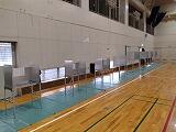 体育館で実際の投票用紙を受け取り、記名台を使って投票箱に投票しました。
