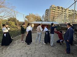2025年10月28日(火)の放課後に、韓国のグミ(亀尾)高校からの留学生7名をお迎えして、弓道部の紹介&弓道体験を行いました。