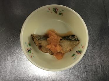 秋も深まり、学校にある木々も少しずつ色づいてきました。たつたあげは、味つけにしょうゆを使います。このため、油であげるとしょうゆの色が赤茶色にうき出てきます。この様子が、もみじが流れる竜田川に見えることから、たつたあげと呼ばれるようになったそうです。 さわらのたつたあげに、もみじおろしをかけて食べましょう。もみじおろしは、だいこんととうがらしでつくる薬味(やくみ)です。給食では、食べやすいようにとうがらしの代わりににんじんで作ります。オレンジ色をもみじに見立てています。