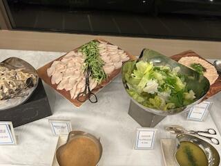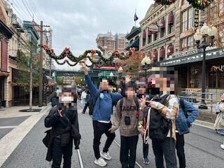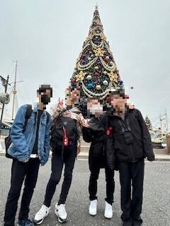 1日目の夕食と2日目の朝食はホテルでビュッフェ形式でいただきました。スープやサラダ、たくさんのおかず、カレー、さらに食後のデザートやコーヒー、紅茶などの飲み物までいただきました。「食べ過ぎ注意」を合言葉にマナーを守って満足の食事時間を過ごしました。そして、ディズニーシーに入園しました。パーク内は早くもクリスマスバージョンで、これから3つの班に分かれてアトラクションなどを楽しんできます。