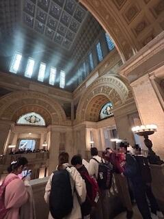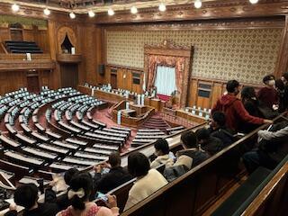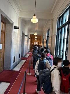 国会議事堂では参議院を見学しました。「テレビで見た部屋や!」と呟いている生徒もいました。その後、皇居外苑に行き、少しクラスごとに散策した後、楠公レストハウスで昼食をいただきました。そのあと、大阪に向けて出発しました。とても思い出に残る2泊3日の楽しい修学旅行でした。