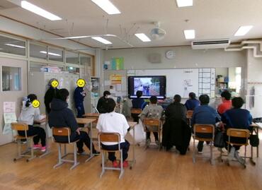 2月5日(木)高等部3年生は卒業学年特別活動を行いました。2限目は、調理実習の材料の買い出し班と保護者懇親会の飾り付け制作班に分かれて準備しました。3、4限目は、1・2年生の頃の写真をみんなで振り返った後、1年生の運動会で披露した『よっちょれ』を踊り、大いに盛り上がりました。午後は調理実習に取り組みました。作り方を真剣に聞き、協力しながら作りました。生地は一人ずつ焼き、焼き色を見ながら丁寧に仕上げました。最後は、ホイップクリームやチョコ、フルーツでトッピング。それぞれが思い思いに盛り付けを楽しみ、完成したホットケーキを笑顔で味わっていました。