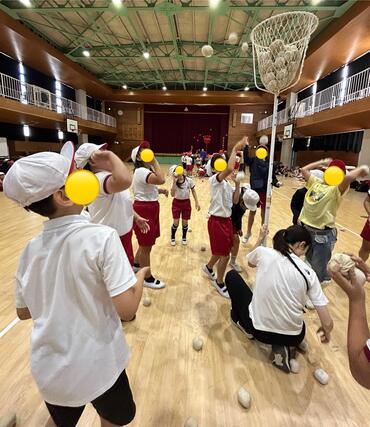 10月14日(火)に錦小学校との交流会がありました。一人ずつ自己紹介をした後に、錦小学校のお友だちと一緒に「もりもりロックンロール」のダンスを踊りました。最後には、玉入れとボール運びゲームをして、笑顔で楽しみながら交流をすることができました。