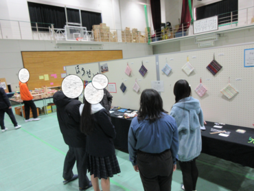 1月22日に芦間高校、守口東高校、門真西高校と学校間交流を行いました。作品展で展示している高等部の作品や製品を生徒たち自ら紹介することができました。その後、各校の生徒の皆さんと一緒に和気あいあいと会話しながら展示作業に取り組みました。