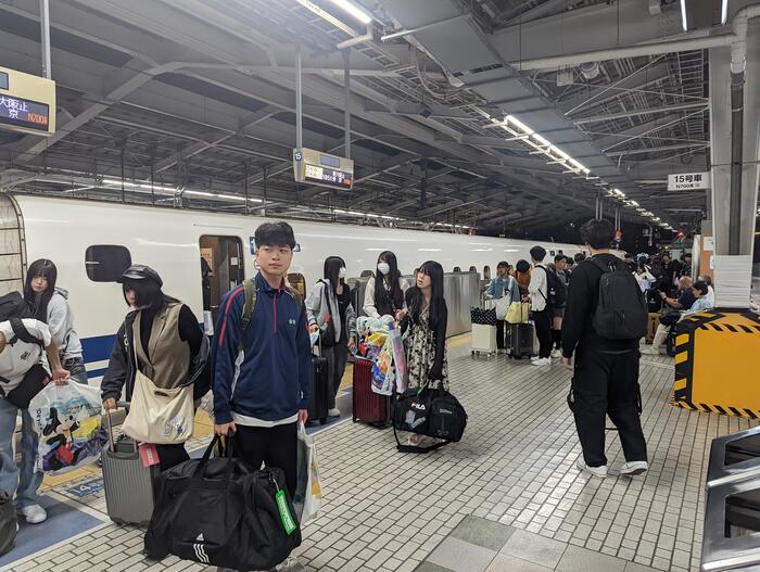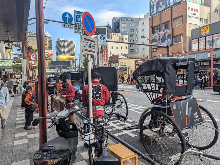 この3日間、観光バスなしに旅行は成り立ちませんでした。車ができたことで現代の生活や、旅行の行程も行動範囲が広く、一日のスケジュールも濃密になりました。そんな中、人力車が車と並行する様子は新鮮でした。まもなく、バスは東京駅に到着します!