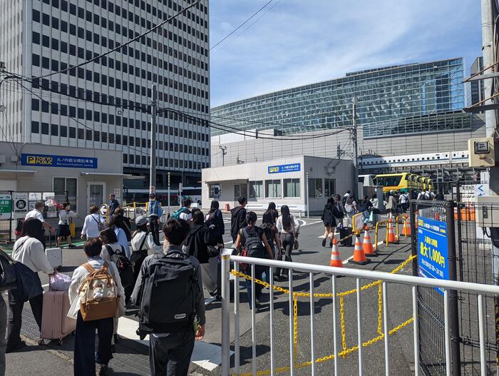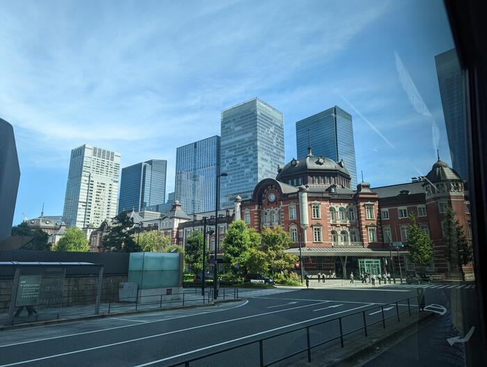 この3日間、観光バスなしに旅行は成り立ちませんでした。車ができたことで現代の生活や、旅行の行程も行動範囲が広く、一日のスケジュールも濃密になりました。そんな中、人力車が車と並行する様子は新鮮でした。まもなく、バスは東京駅に到着します!