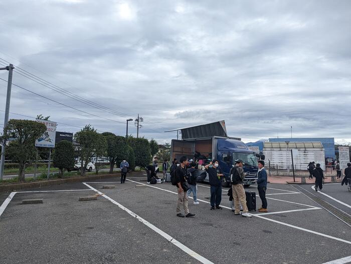 9:40頃にディズニー組は浦安にむけて出発しました。到着予定は13:00頃です。台風による風の走行規制が気になるところです。ただ、台風自体は東へ離れていく経路のため、昼以降の活動は良い天候の元でおくれそうです。写真はバギーときのこ狩りを選択したメンバーです。こちらは、10:30頃から活動開始にむけてテンション高めです。