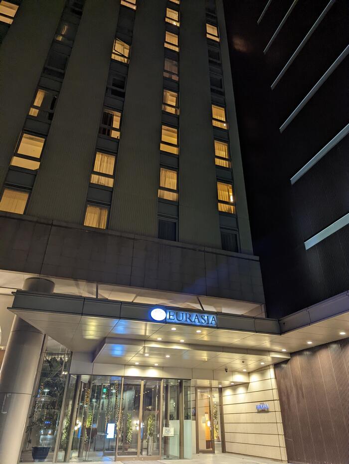 無事に橋を渡り、フジテレビを横目、スカイツリーを探し夜のドライブを楽しみながらホテルをめざします。夜の首都高速道路(大阪に例えると阪神高速道路が同じ役割でしょうか)は見どころ満載でした。まもなく舞浜ユーラシアホテルです!また、TDLからもホテルめざして移動中です。