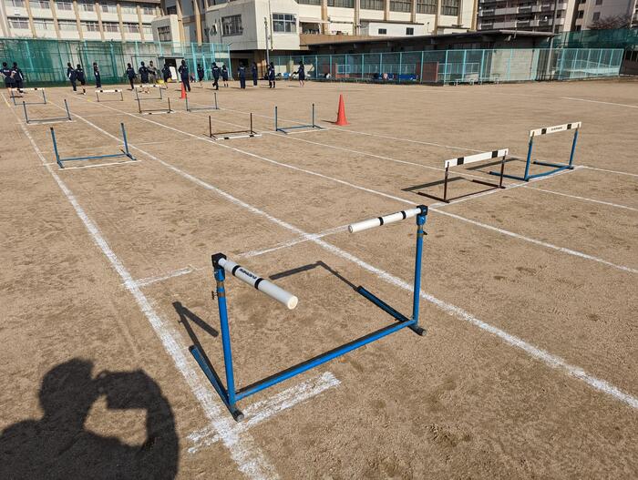 本日の四時間目は、グランドにて体育(陸上・ハードル走)を授業見学しました。昨年度から1年生の体育授業の生徒評価が非常に高くなっています。写真のように個に応じた目標設定を与え、モチベーションを高めている工夫があります。こんなところにも要因があるのではと感じます。最後は50mを走り切り、次回はタイムトライアルだそうです。