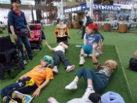 最後に時空の広場に行って、人工芝の上に寝転がってリラックスしました。慣れない感触にびっくりする人もいれば、気持ち良さそうに寝転がっている人もいました。
