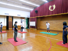 また腰痛予防対策として、身体全体のストレッチも体育科の先生から学びました。