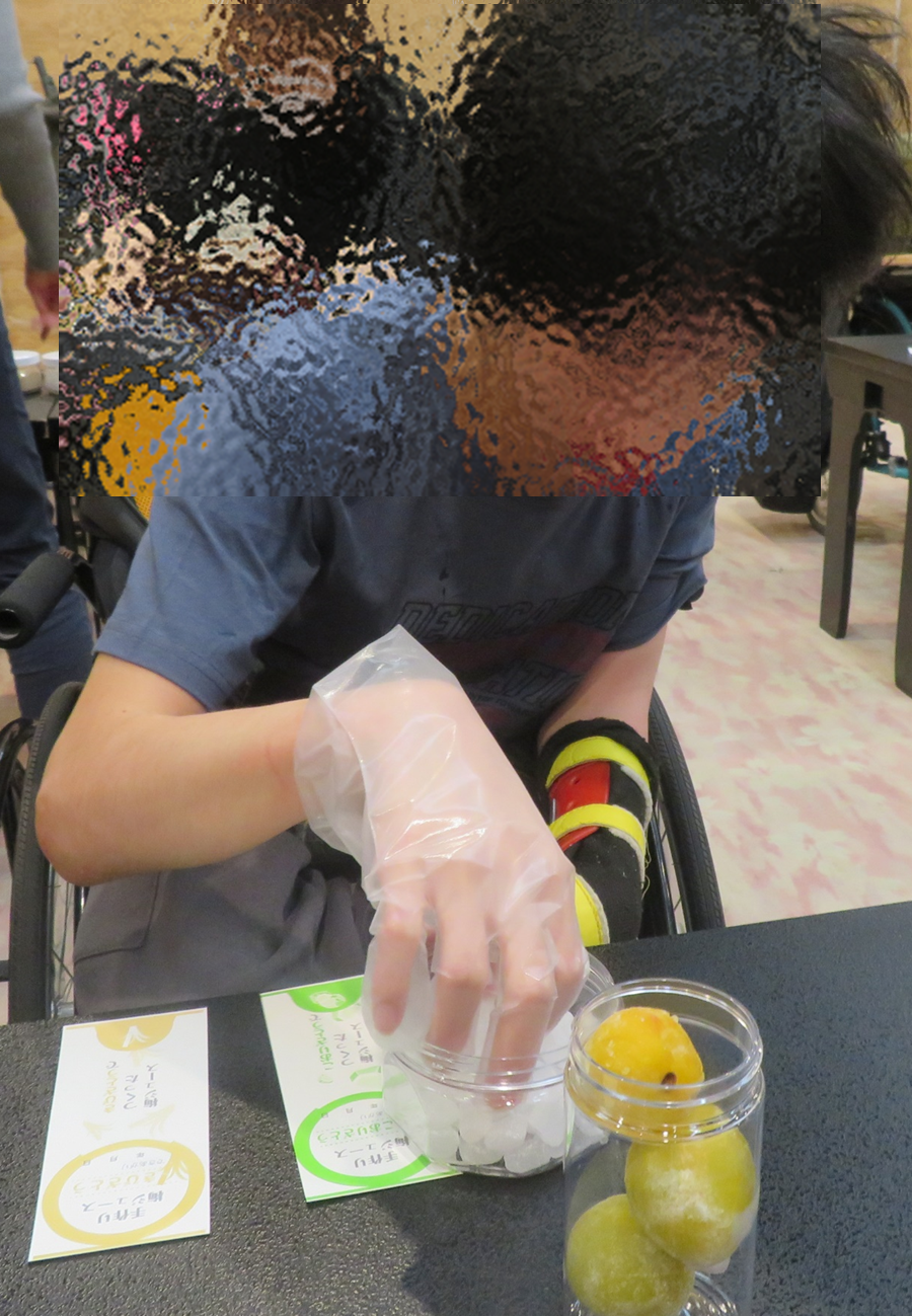 2日め、朝食の後は、梅ジュース作りを体験しました。紀州梅干館からお越しくださった2名のスタッフの方々に、梅の説明や、作り方の手順を教わりました。氷砂糖、きび砂糖、色とりどりの金平糖などを選んで2種類の梅ジュースを作り、オリジナルのラベルには漬け込む期間を記入して、箱に入れて完成です。自分だけのできたて梅ジュースが嬉しくて、鞄に入れてしまわずもう少しの間だけ手もとに置いておきたいという生徒もいました。