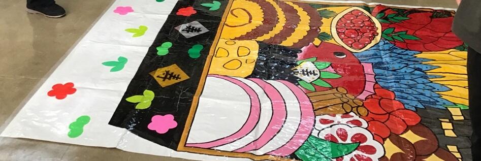 「おせち料理は、何が好きですか。」「伊達巻、食べたことありますか。」「かまぼこ美味しいですね。」「エビは、腰が曲がるまで長生きできるように、という意味があります。」等、おせち料理の内容や言い伝えの話をすると全員興味津々の様子で聞き入っていました。お正月の思い出話に花を咲かせながら、それぞれがボールを投げたり転がしたりしました。どの食材が高得点なのかを覚え、そこを狙ってボールを投げるのですが、勢い余って絵の外までボールが転がってしまったり、想像以上に転がらず絵の手前で止まったりと、思う場所に着地しないのも面白かったようです。そして、学年の仲間と一緒に活動する楽しさやゲームの難しさなど、それぞれにが喜怒哀楽、様々な表情をそれぞれ見せながら盛りあがりました。