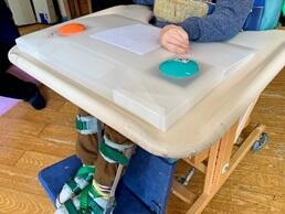 小学部ABグループ 5年生児童(筋緊張が強く上下肢に動かしづらさがある。視覚障がいがある。) |