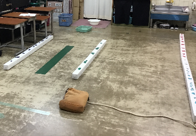 【成果】 役割を決めた後の「運ぶボールを選ぶ」「受けるかごを選ぶ」「障がい物を超えてペアの友だちが持つかごまで行く」「スタート地点へ戻る」等の一連の流れについて、指導者が手本を見せたり、教室の床に目印をつけたりすることで、見通しを取もって組むことができた。また、「ボールを運んで入れる」「運ばれたボールをかごで受ける」という役割や順番について話し合う際、話し合って欲しい内容を電子黒板に示したり、写真カードコースを示したりすることで、それらをヒントに友だち同士で考え、確認する場面が見られるようになった。さらに、指導者へ簡単な要求を伝える場面(縄跳びの縄を動かしてもらうこと)では、自ら指導者のところまで行き、児童それぞれのコミュニケーション方法で伝えることができた。 |