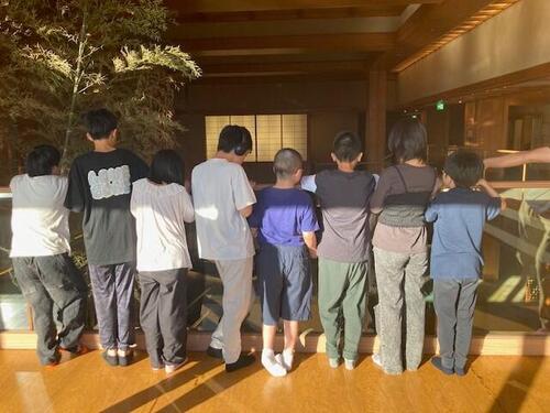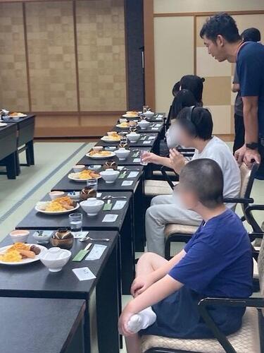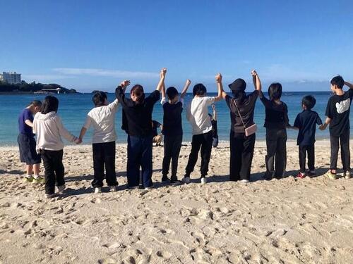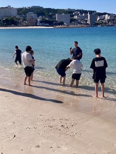 おはようございます。 いい天気になりました。 昨夕、ホテルに着いてから温泉に入り(お湯がしょっぱかったね)、夕食もいっぱい食べました。 そのあとは近くの砂浜で花火をして、就寝。 みんな朝までぐっすり寝ました。 2日目の朝もみんな元気です。 朝食を食べて、白良浜へ。