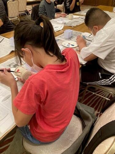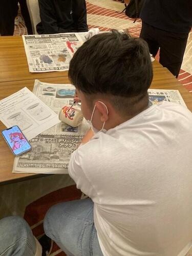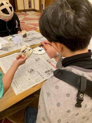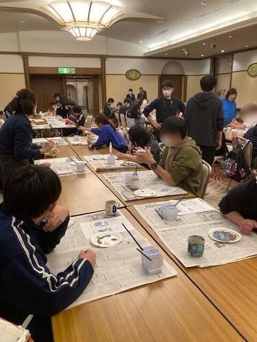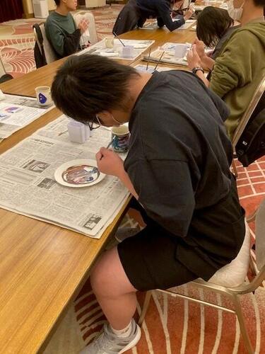 フルーツフラワーパークに到着後、絵付け体験を行っています。