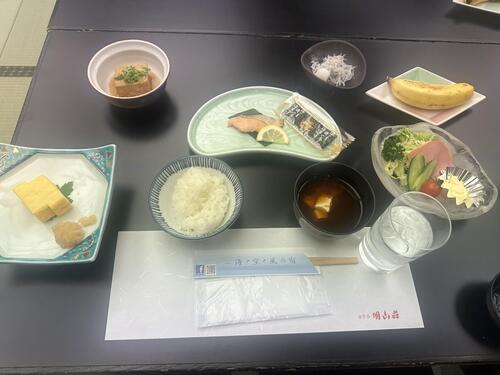 みんな元気に朝食会場に来ました。ただいま朝食中です。今日の活動を楽しそうに話しています。