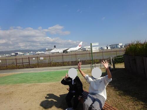 伊丹スカイパークに到着すると、隣接する滑走路に見える飛行機に生徒たちも喜んでいる様子でした。