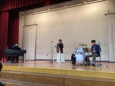 ピアノ・サックス・ドラムの三重奏で、いろんな曲を演奏してくださいました。