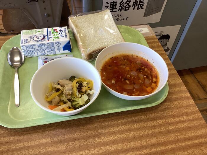 昨日の給食は,食パンとイチゴジャムと鶏肉と野菜のチーズ焼きとミネストローネと牛乳でした。 昨日の給食の野菜のチーズ焼きは鶏肉モモ肉プロセスチーズとナチュラルチーズとオリーブ油とパプリカと人参とブロッコリーとぶなしめじとキャベツとニンニクとバジルを使っていて、イチゴジャムは、低糖度で出来ていて、ミネストローネは、ベーコンと大豆水煮と鶏がらしとオリーブ油とシェルマカロニと三温糖とニンニクとセロリと人...