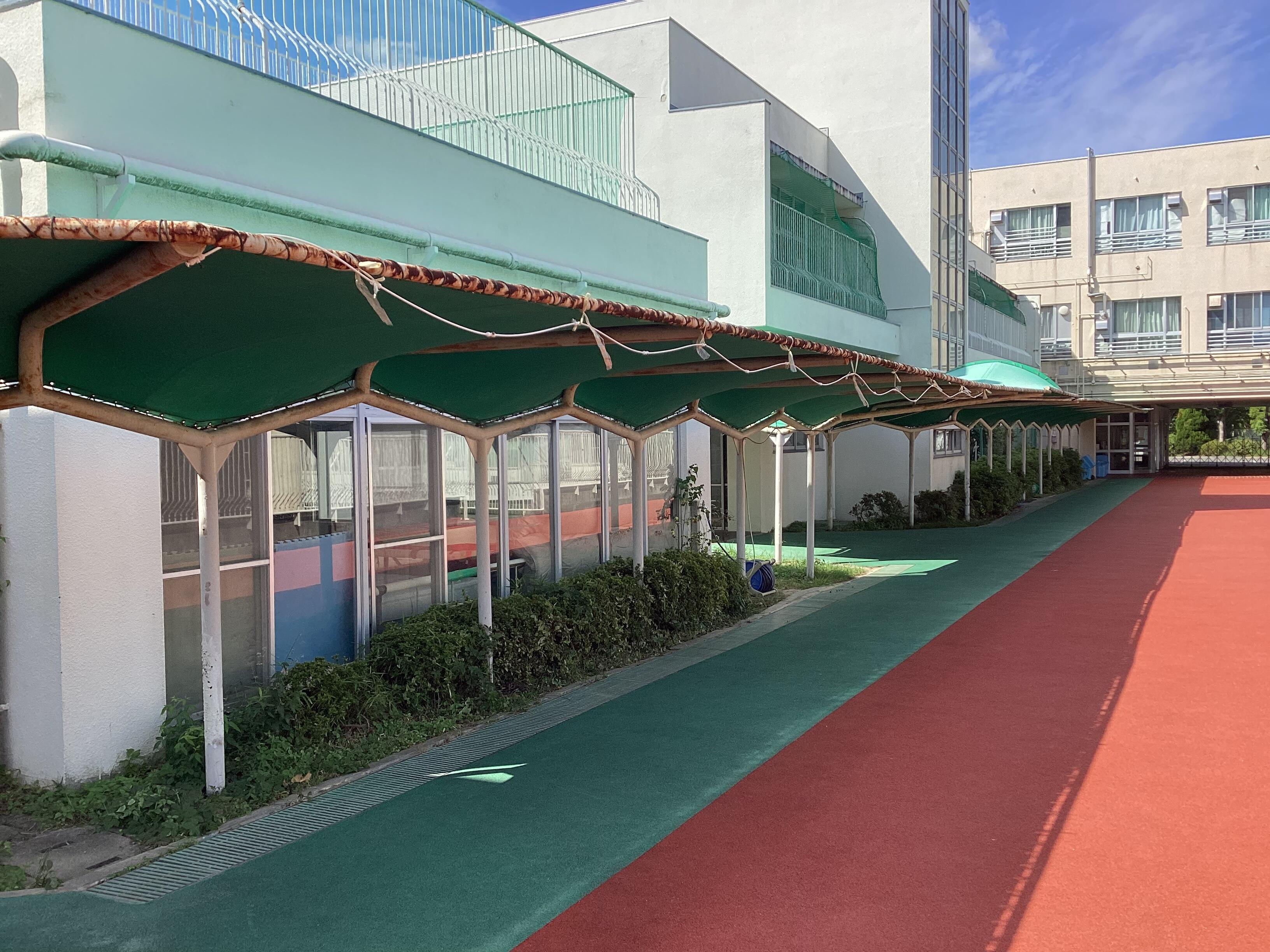グラウンドや小学部棟にも繋がっていて夏になると熱中症対策にもなります。
