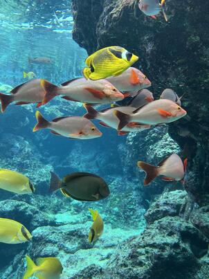 めんそーれ!?高等部3年4組「寝屋川支援学校所属」MVPです 今回私達は沖縄へ修学旅行に行ってきました。 沖縄と言えば?そう!海です!👍という訳で、ねやりんりんちゃんと3年生の皆で美ら海水族館へ行ってきました! 水族館にはジンベエザメや🐠、🐟ϵ( 'Θ' )϶この子達が居ました。 太陽に照らされ綺麗な水槽にいる🐠達が水と共にエメランド色に輝いて綺麗に 見えました!とても美味しそうには見えませんがとにかく綺麗でした。(● ˃̶͈̀ロ˂̶͈́)੭ꠥ⁾⁾ 最高の修学旅行になりました♪✌︎('ω')✌︎→終わり。