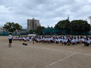 雨が心配な天気でしたが、なんとかグラウンドにて実施できました!