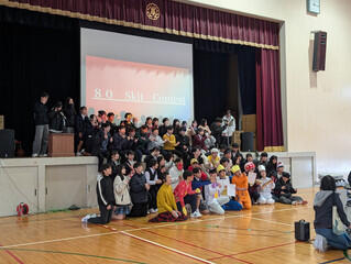 どのクラスのスキットにも創意工夫があり、背景のスライド、音響等を用いながら演技をしていました。