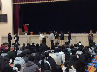 生徒たちは言語文化の授業で各クラス1回ずつ練習をしてから、今日の本番を迎えました。