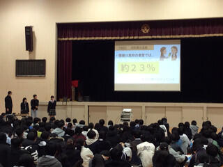 総合的な探究の時間では、1年間をかけて「地域・生活の課題」をテーマに「問い」を立て、その問いに対する調査、解決方法の検討を進めてきました。