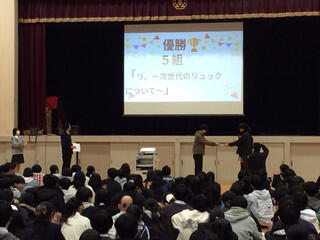 その結果優勝したのは、1年5組の「リ。~次世代のリュックについて~」というテーマで発表した班です✨