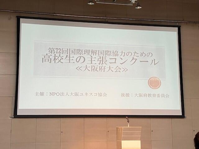 本校の2年生2名が、NPO法人大阪ユネスコ協会主催の「第12回国際理解国際協力のための高校生の主張コンクール 大阪府大会」に出場しました。