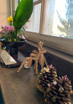 12月4日(金)、期末考査も折り返し日、1・2・3年生ともあと4科目。これまでの積み重ねと上手に金土日を使ってテストに臨んでください。予報では寒い日がまだ続きますので体調管理もしっかりとしましょう。さて、写真は本館1F校長室前の棚。季節にあわせて定時制の生徒さんが生け花とともに飾ってくださっています。外は寒空ですが、通るたびにほっこりとさせてもらっています。いつもありがとうございます!!