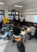 12月22日(月)、先週の金曜日の放課後、DXルームでデジタルカーリング大会を行いました。2つの半に分かれ、プログラミングをして、ストーンに記憶させます。そして、ゲームスタート。 15秒以内に停止させるのルールで相手の行動予測が大事。生徒たちは作戦を立ててゲームを楽しんでいました。相手のストーンを押し出すなど高等テクニックも。また次回が楽しみです。