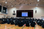 2月5日(木)、本日6限目は体育館で2年生の探究発表会がありました。各クラスの代表が「声と話し方」「最先端のマスク」「外国人の来日目的」「コンピューターのランダム」「人の第一印象」「昆虫食」「給食の食べ残し」「7限授業」「未来のクルマ」などのテーマでスライドを用いて発表がありました。プロセスを学ぶことで仮説を検証、素敵な発表がいっぱいでした。問いを立てアンケートや文献等根拠をもとに論理を展開する探究的な学びが深まったのではないでしょうか。3年生に向けて自らの問いもさらに深めてほしいものです。
