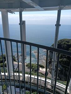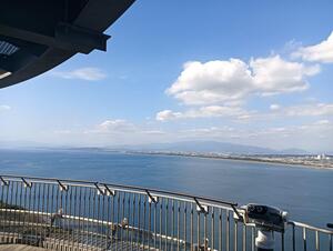 江の島のシーキャンドルと、バスを止めていた場所の前の写真