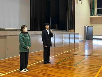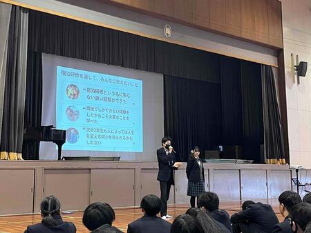 2年生の代表生徒二人が、宿泊研修をとおして学んだことやみんなに伝えたいことを発表しました。