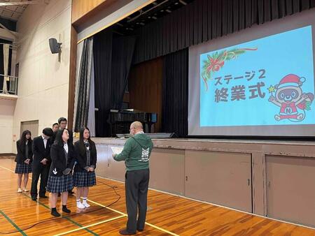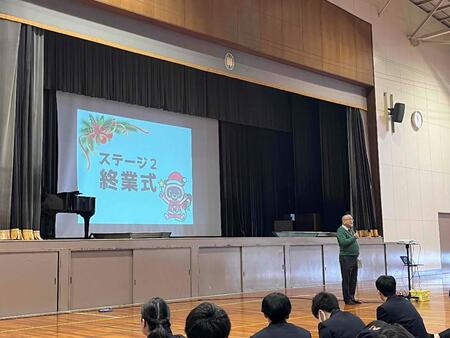 校長先生からは、「あやまる」ということの大切さと、この1年を振り返り"もっとこうしたらよかった"と思うことを来年実行しよう!というメッセージが生徒たちに伝えられました。